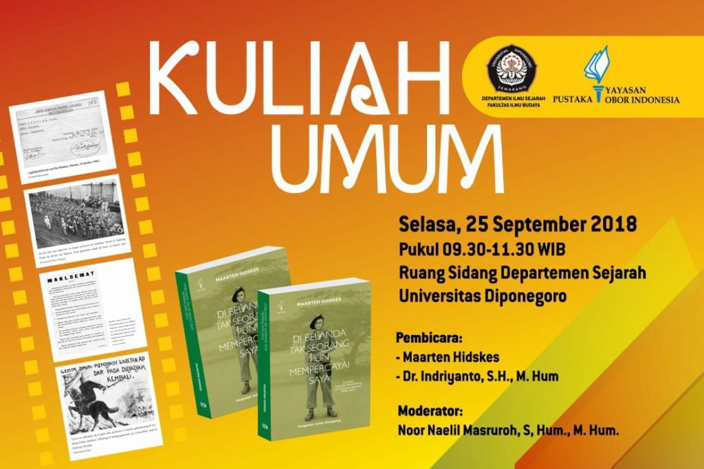 In the Netherlands, Nobody Believes Me is the fruit of long research by Maarten Hidskes, the biological son of Piet Hidskes, a Dutch special soldier who served under the command of Westerling in 1946-1947 in South Sulawesi. Department of History, Faculty of Cultural Sciences, Diponegoro University on Wednesday (25/09/2018) welcomed Maarten’s presence. Loud applause from […]
